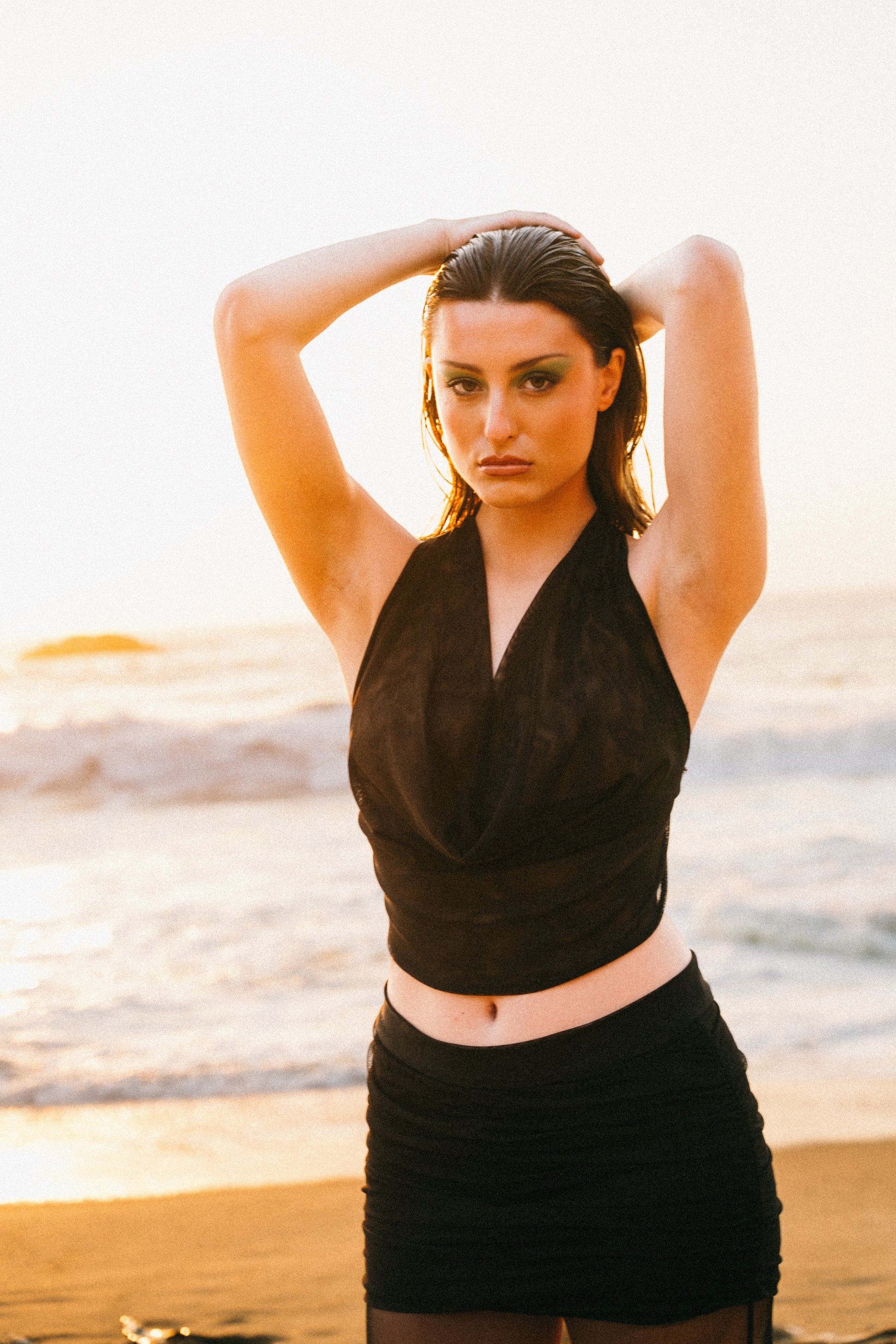 Top escote halter, con caída ligera.