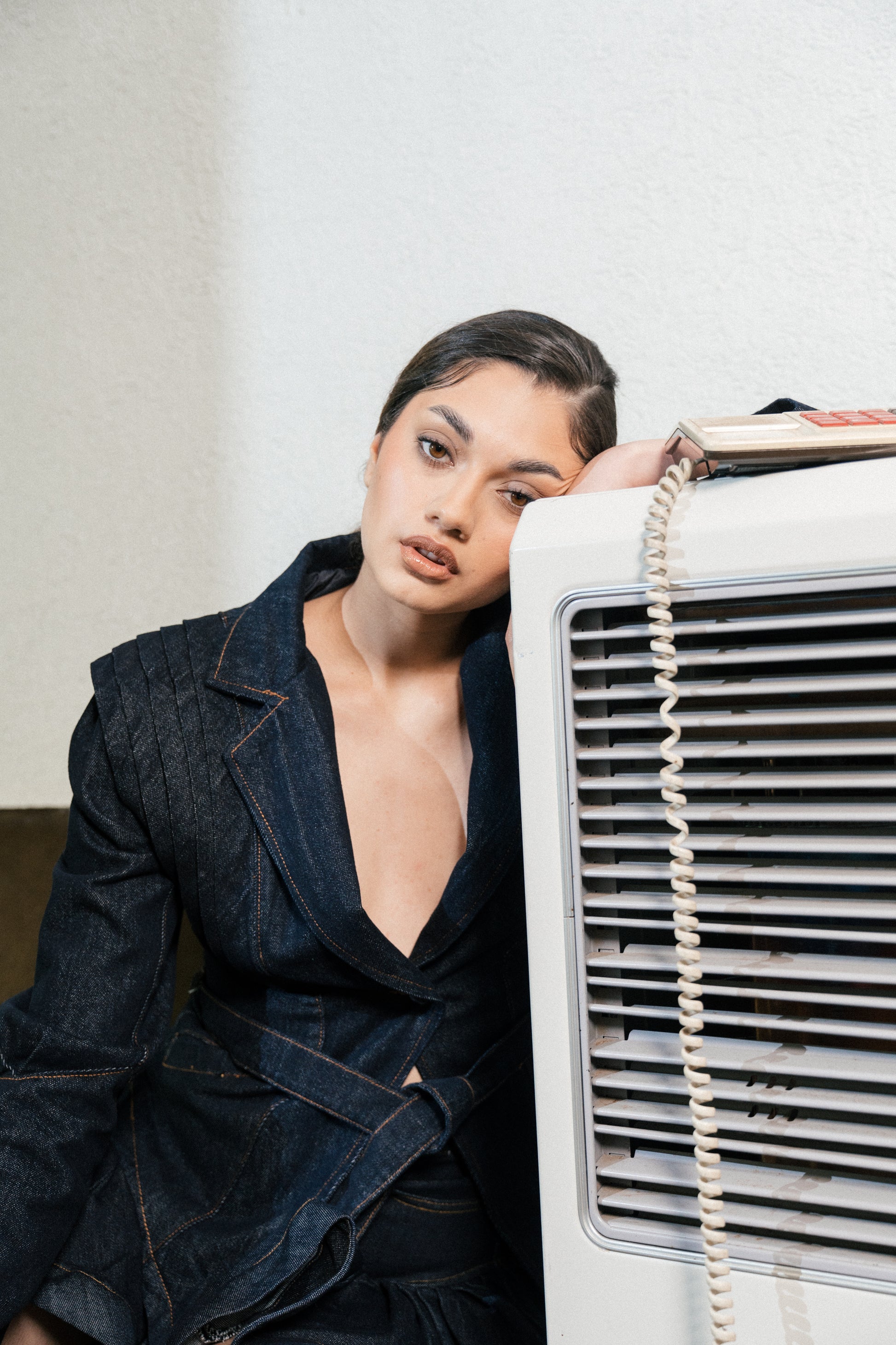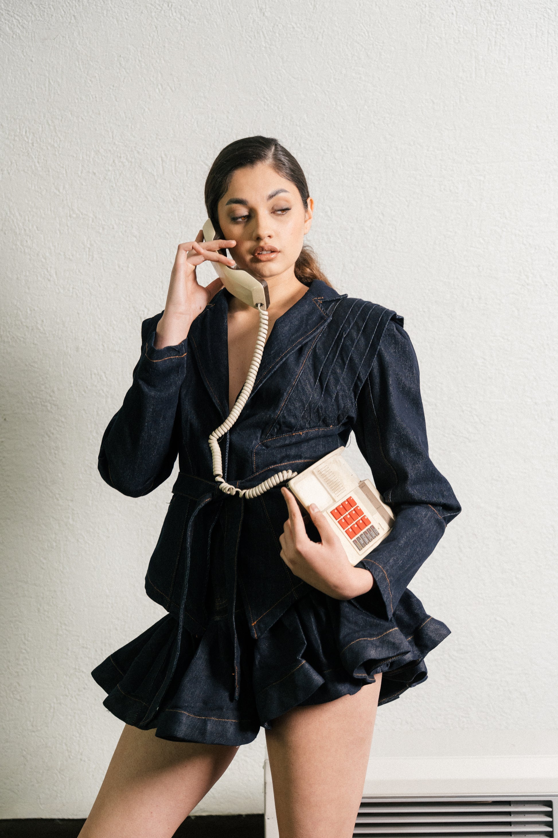 Chaqueta confeccionada en denim estructurado con costuras marcadas.