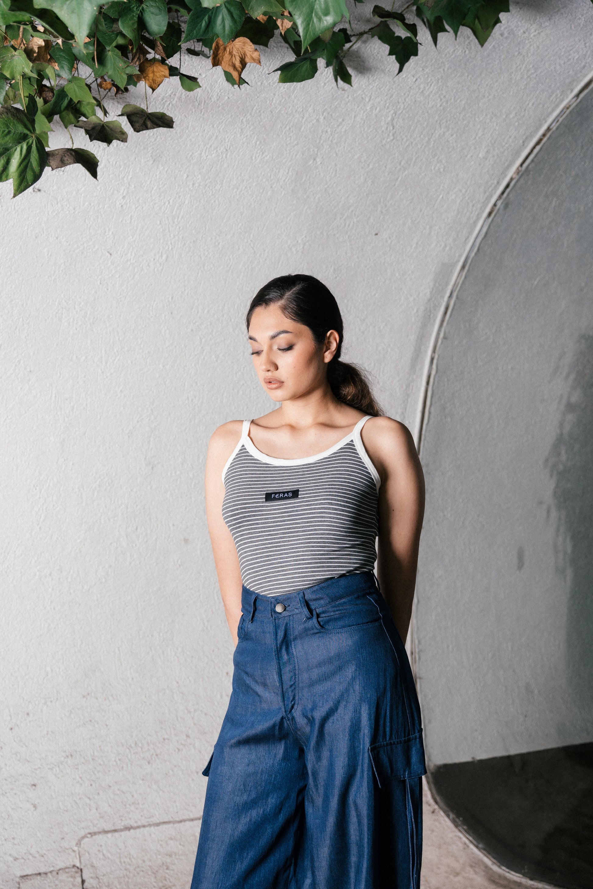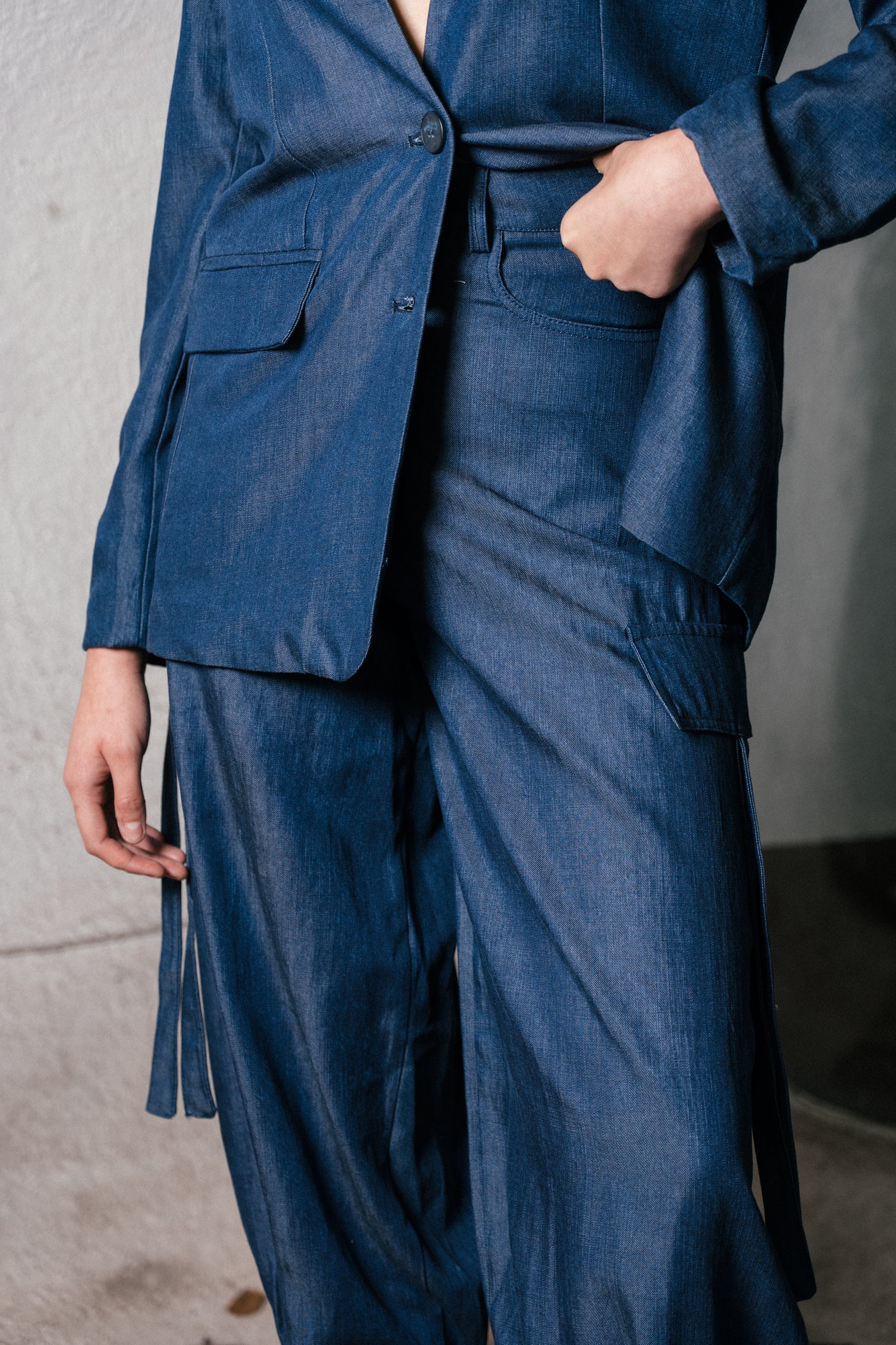 Pantalón denim liviano con caída fluida y calce relajado.