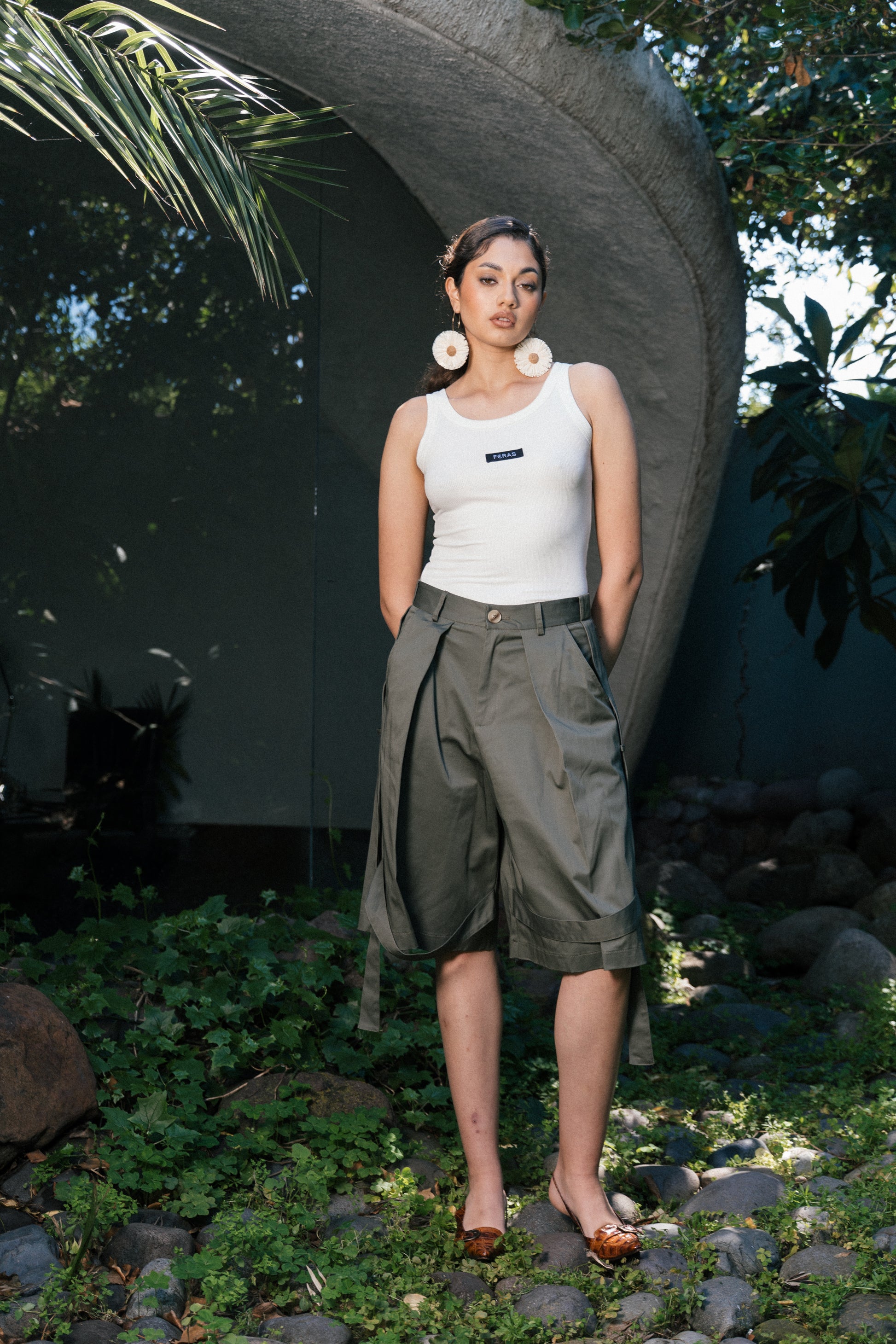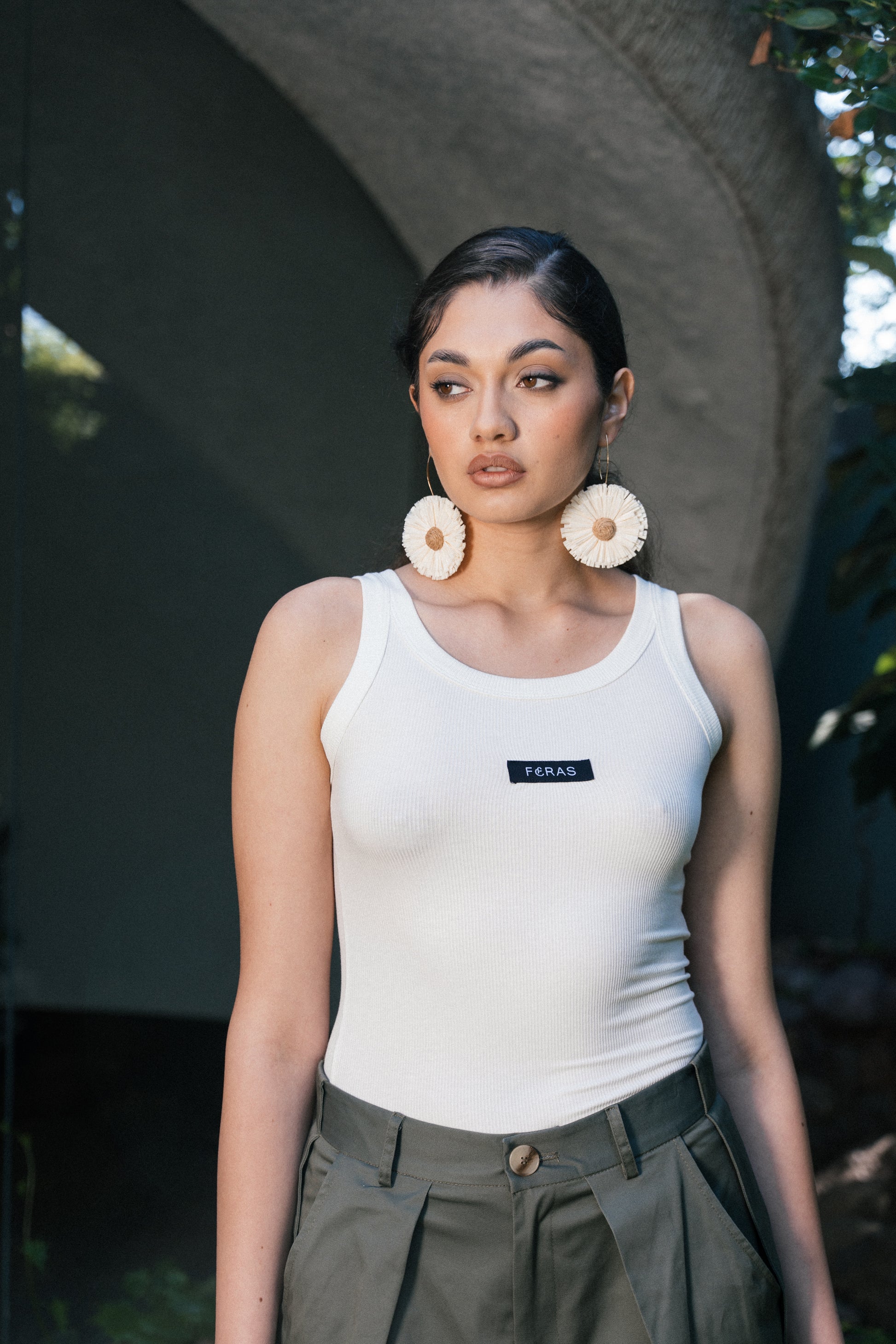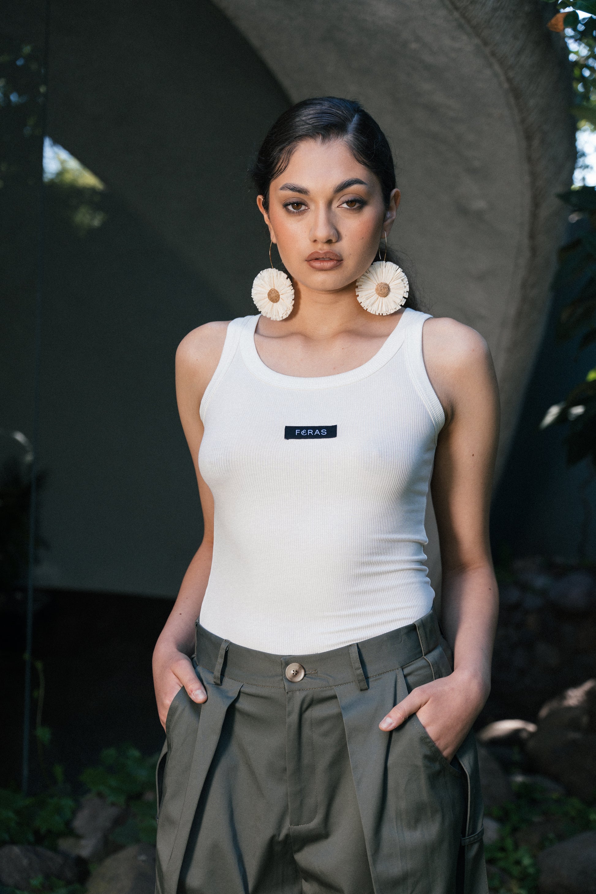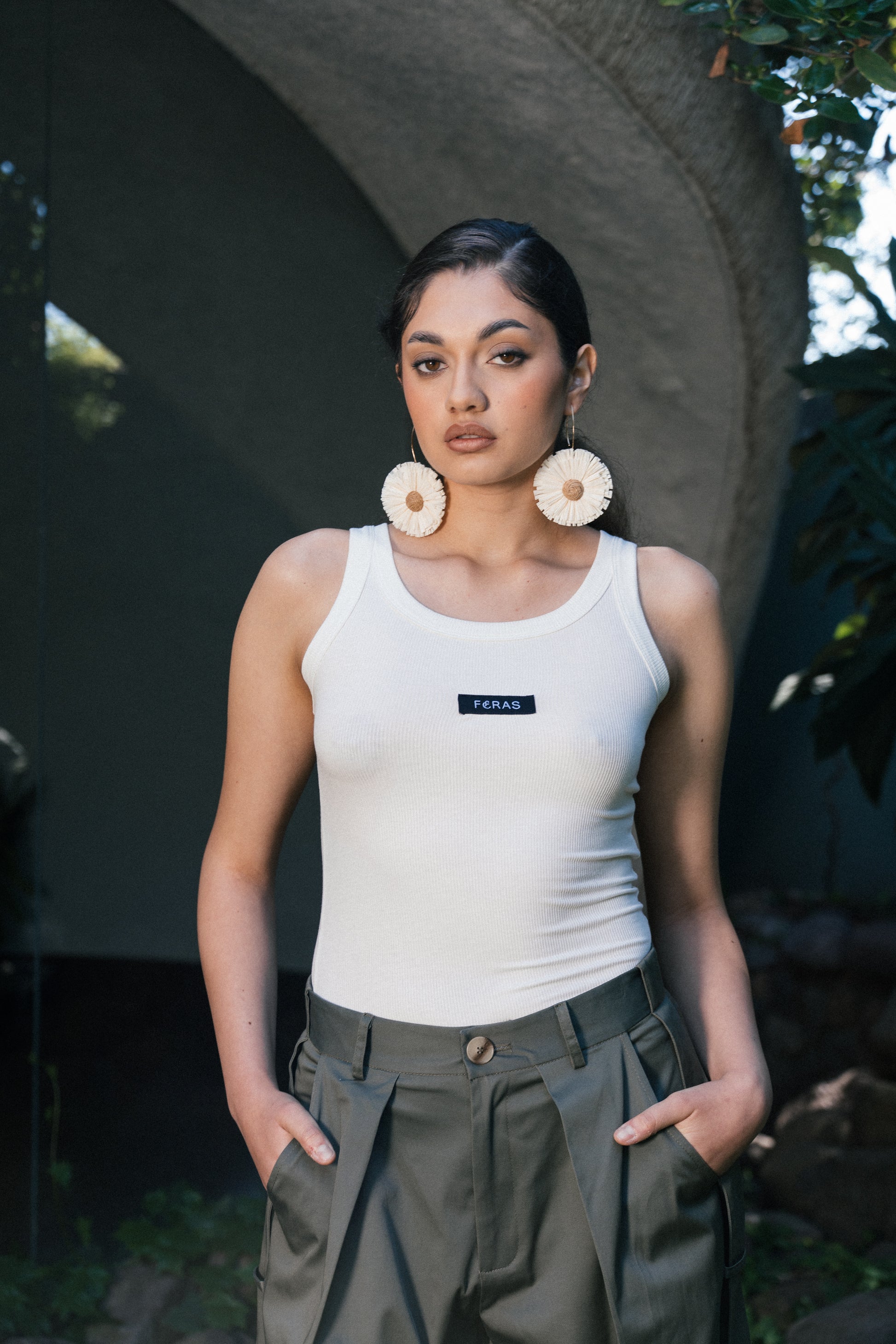 Diseño escote redondo y tirantes anchos con detalle de logo FERAS.